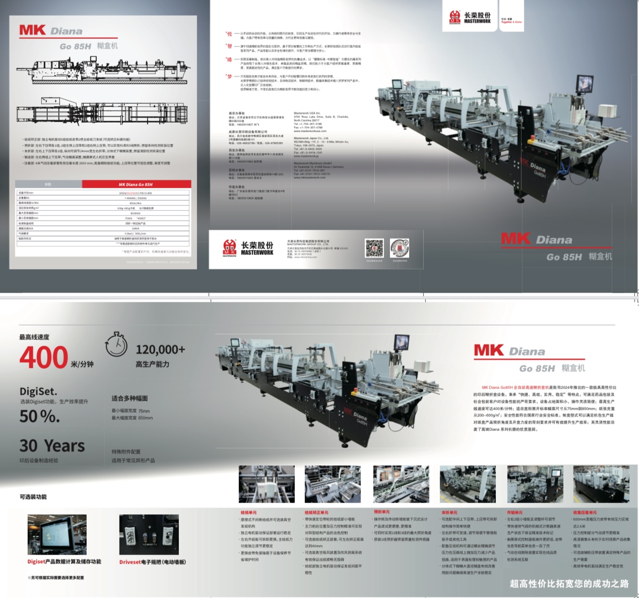 MK Diana Go 85H全自動高速糊折盒機(jī)是我司2024年推出的一款極具高性價比的印后糊折盒設(shè)備。秉承“快捷、高效、實(shí)用、穩(wěn)定”等特點(diǎn)??蓾M足藥品包裝及社會包裝客戶對設(shè)備性能的嚴(yán)苛要求。